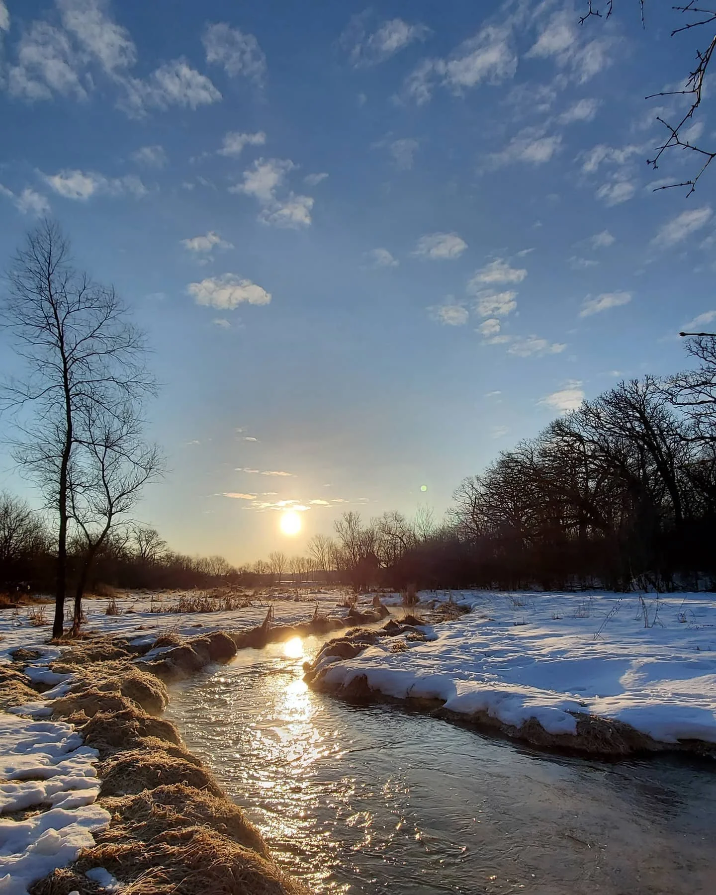 Just before hitting Bluff Creek State Natural Area, the Millis Rd. crosses Bluff Creek. Pull over and snap a photo of the creek to the right of the road. Gorgeous any season, but grab a shot at sunrise for stunning sunburst additions to your photo.