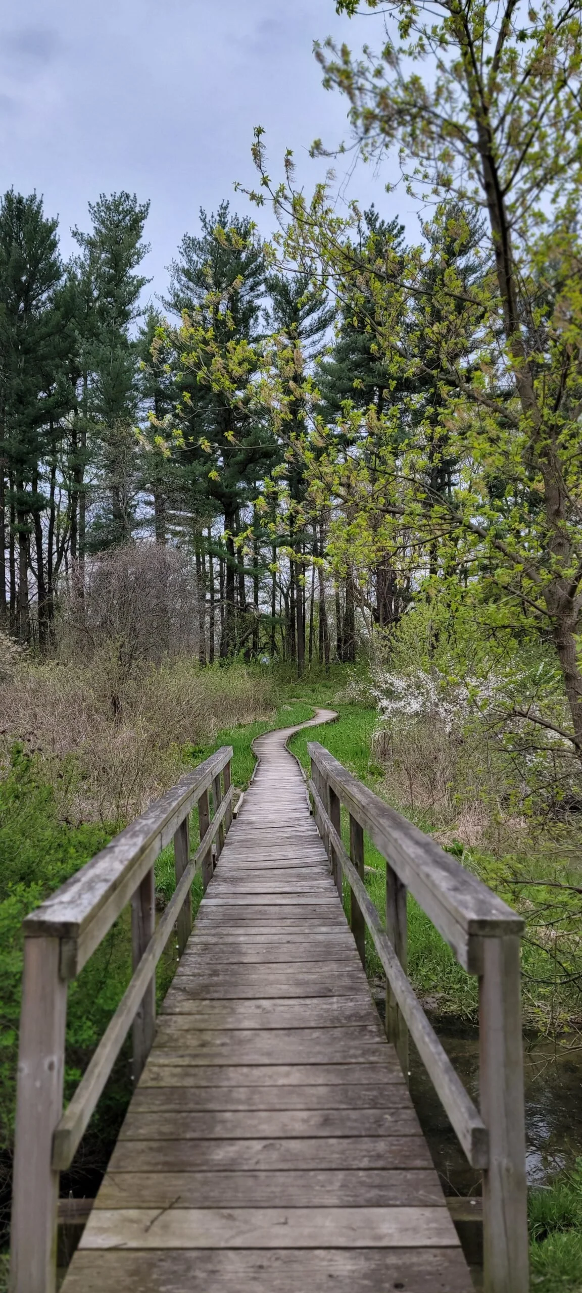Start at the trailhead off Clover Valley Rd. and less than a minute through the woods emerges Whitewater Creek and wetlands with a little footbridge. Photograph this bridge any season under any light and with any weather. You will not be disappointed by its arresting beauty.