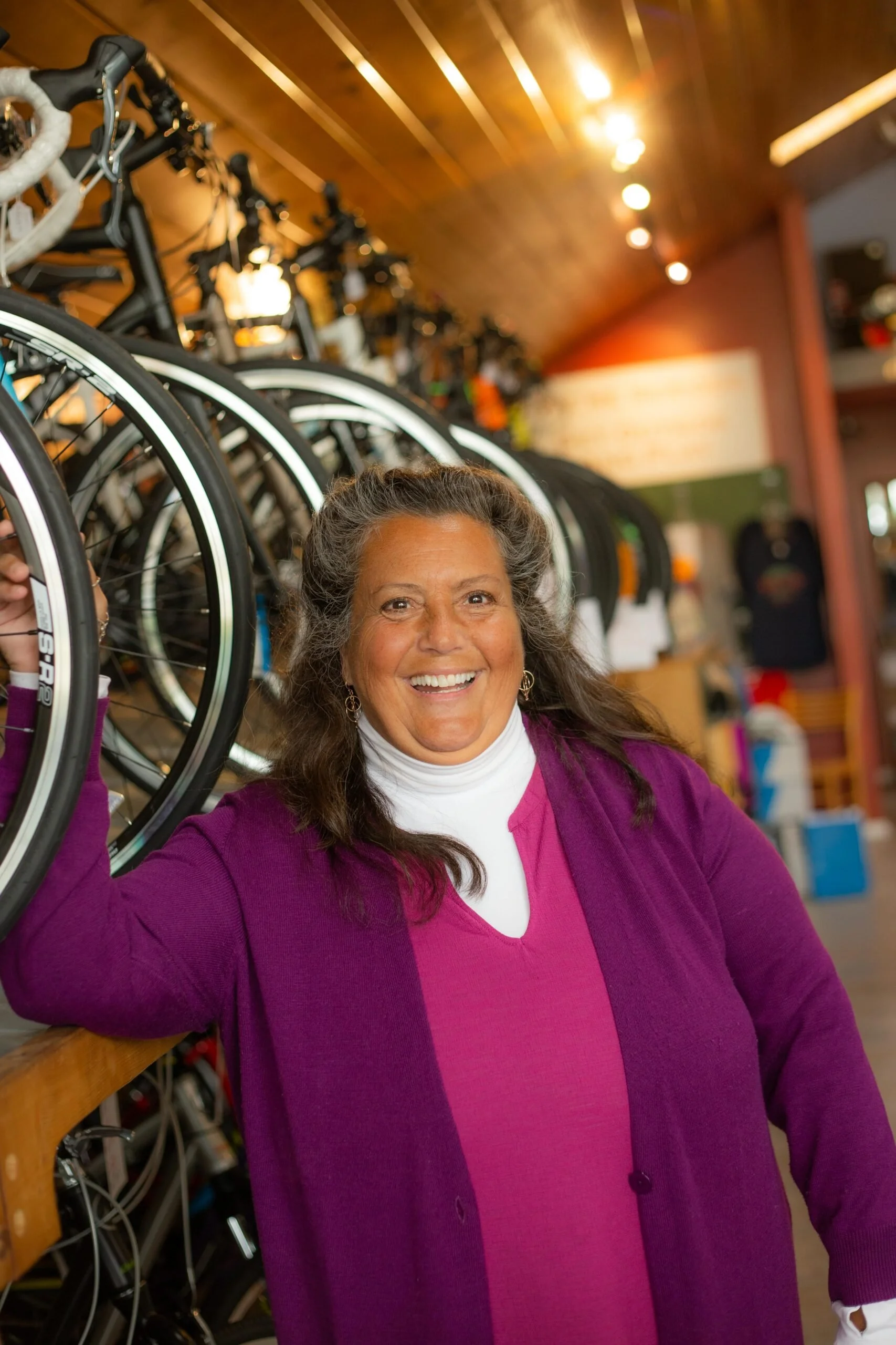 Liz and John's favorite brand is Giant because "more people can afford it." So not only do they want people of all ages on bikes without breaking their banks, but Liz and John are warm people with so much appreciation for where they live.
